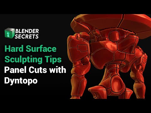 Now that we've finished most of the sculpting, let's add some panel cuts using the crease brush. We can reduce the geometry with a decimate modifier and still get clean panel cuts using Dyntopo, which automatically adds geometry where needed.